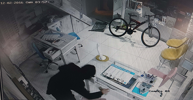 Öte yandan hırsızlık olayları iş yeri güvenlik kamerasına saniye saniye yansıdı. Görüntülerde, saat 03.26'da motosikletle dükkanın önüne gelen ilk hırsız, çevreyi kontrol ettikten sonra elindeki bir cisimle camı kırıyor. İçeriye giren hırsız daha sonra masa üstünde bulunan dizüstü bilgisayarı alıp kaçıyor. Saat 03.57'de ise kar maskeli iki kişinin bulunduğu motosiklet görülüyor. Motosikletin arkasından bulunan şahısın, içeri girip gözlük ve cüzdanı saniyeler içinde alıp motosikletle kaçma anı görüntüye yansıyor.