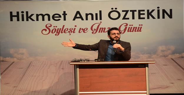 Eğer eski normal hayatıma geri dönseydim, ona ihanet etmiş olurdum diye düşündüm. Dolayısıyla onun bana öğrettiklerini bırakmayıp devam ettirdim. O gittikten sonra onu, öğrettiklerini unutursam büyük bir vefasızlık olur diye düşündüm" diye konuştu. Şiir dinletisi ile konuşmasını sürdüren yazar Hikmet Anıl Öztekin, söyleşi sonunda sevenleri için kitap imzaladı.
